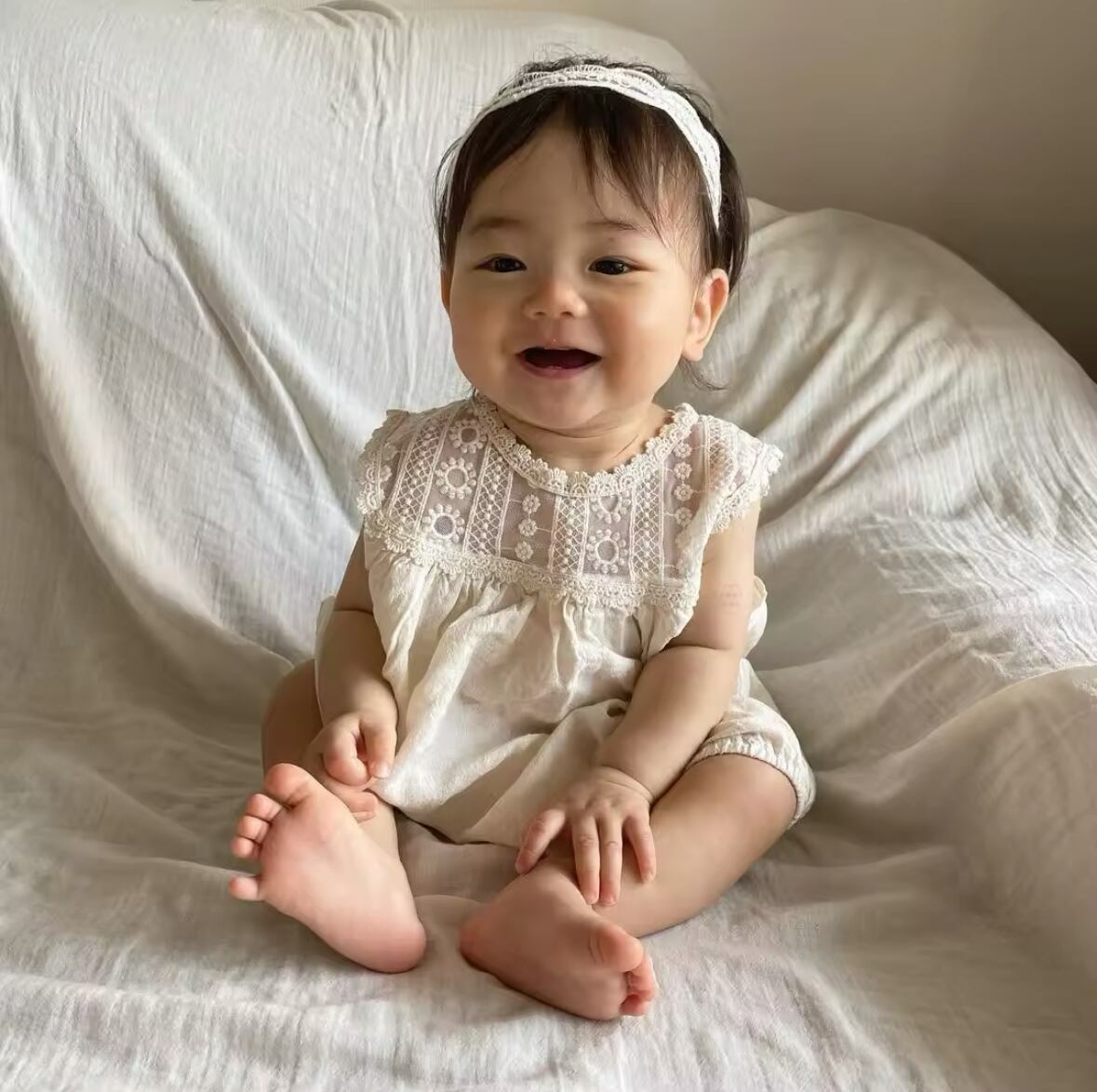 レースになっていて可愛いロンパースです♪